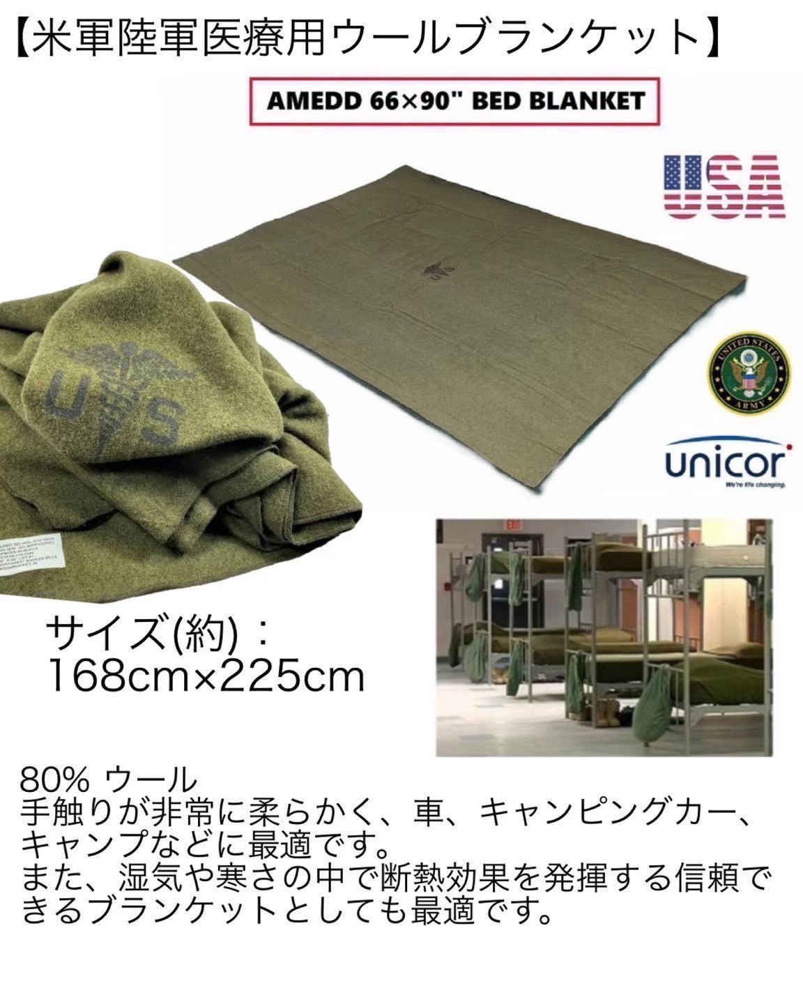 これは米陸軍医療局(AMEDD)が実際に使用していた実物放出品のベッドブランケットです。