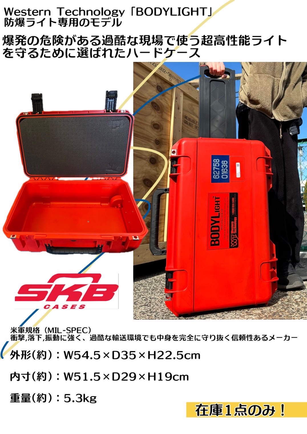 本品は、SKB社が防爆ライト「BODYLIGHT」専用に設計したプロフェッショナルハードケースです。