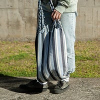 ハンモックのサスペンション部分が持ち手のデザインになったトートバッグ。 春夏〜秋冬と季節に合わせやすく、複数所有したくなる豊富なカラー展開です。 多色使いで、コーディネートに程よいアクセントを加えます。 マチつきで荷物が安定するので、なんとなく置いても絵になる。 織り方やデザインからトラディショナルな魅力を感じられるバッグです。 ストライプが交互に流れる涼しげなデザイン。