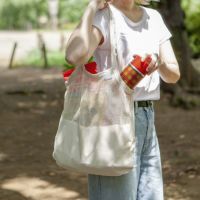オーガニックコットン素材のメッシュバッグ。コットン素材ならではの素朴さ、角のないフォルム、ハーフメッシュのデザインは、サブバッグでありながら気付いたらメインで使う なんて時も。コンパクトに折りたためるので、お買い物はもちろん、旅行の時もマストで持っていきたい。S,Lの2サイズより。