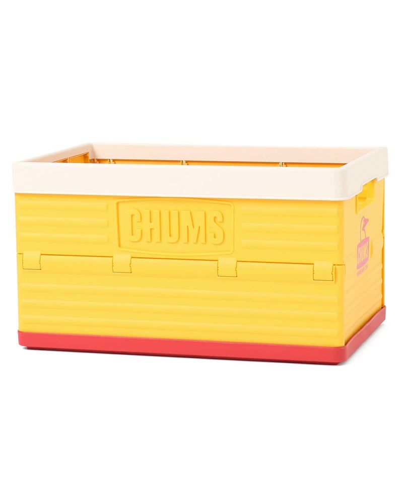 機能性とデザイン性を兼ね備えた、容量45Lの折りたたみコンテナ。CHUMSらしいカラーリングの3色展開で、レトロ感漂うデザイン。左右の側面と底面裏にあしらった、エンボス加工のCHUMSロゴがアクセント。3個まで重ねることができるので、同色または色違いで揃えても◎