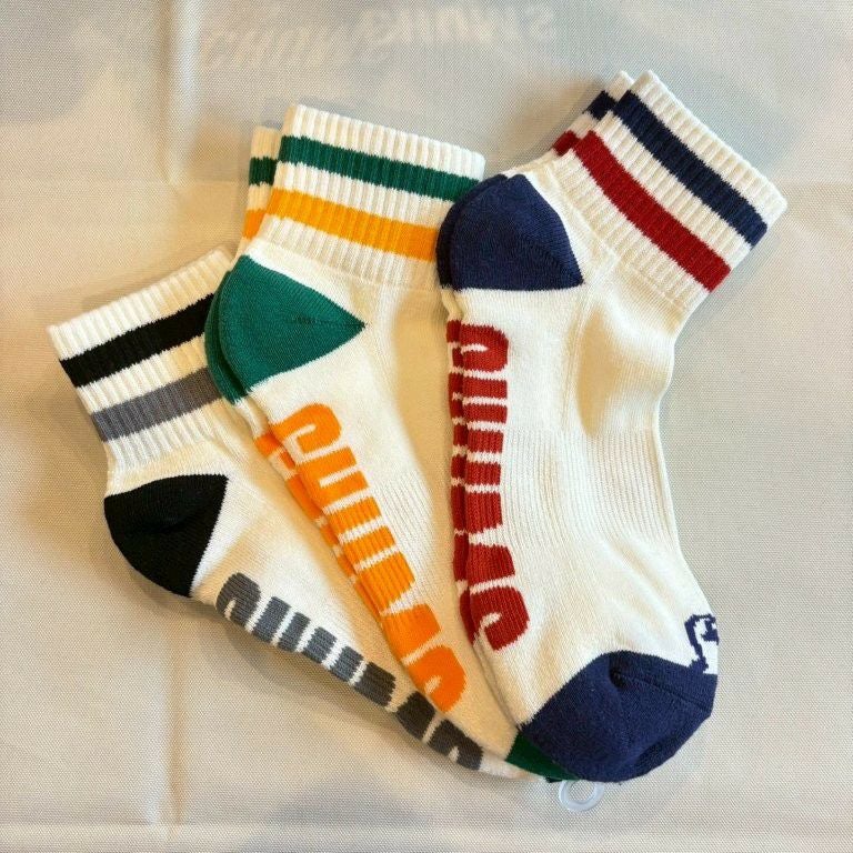 ひょこっと顔を出すブービーバードがかわいいラインソックス 3Pラインクルーソックス S~M 【Ivory】