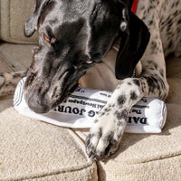 ダルトンならではの遊び心が詰まったユニークな犬用おもちゃ。 自分の愛犬にはもちろん、仲間にもプレゼントしたくなる個性的なラインナップです。 普段はインテリアに紛れ込ませつつ、ゆったりと流れる休日の午前中やDIYの合間に遊んでほしい。 犬と人の時間がこのアイテムを通して豊かになる事を願って。