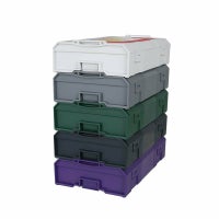本体と持ち手の配色が目を引く、仕切り付き収納ボックス。 スタッキングしたまま持ち運びが出来る連結式なので、複数使いがおすすめ。また中の仕切りは取り外しが可能なので、工具入れ、ファーストエイドボックス、文房具入れなど、用途に合わせて使えます。選べる5色展開より。