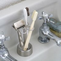 歯ブラシを清潔に維持する、小さな一輪の花 ステンレス 4ホール トゥースブラシ ホルダー【MIRROR FINISH】