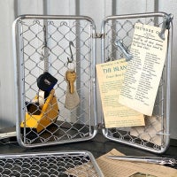 アメリカのガレージや庭で一般的によく見かけるフェンスを、卓上サイズに仕上げました。大雑把な仕上がりとガルバナイズドの無骨ささえも、憧れの要素に。 アクセサリー、鍵、ミニ靴べらなど、小物用ストレージとして。またエアプランツを吊り下げればまた違った雰囲気を演出できます。