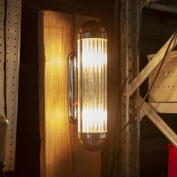 複数のガラスの棒が電球全体を覆った壁付け照明。ガラスに反射した電球の光が、柔らかな空間を演出してくれます。目にする度に虜になる不思議な照明です。玄関、廊下、階段など、あなたの生活の通り道に取り入れてみませんか?ガラス部分はクリアとホワイトの2カラー展開。