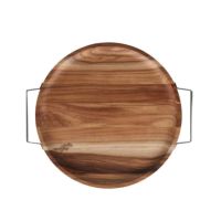 アカシア素材のラウンドトレイ アカシア トレイ ウィズ メタル ハンドル ラウンド