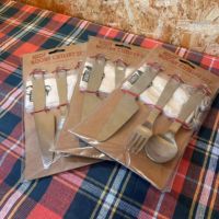 スプーン、フォーク、ナイフをひと揃えにしたカトラリーセット。持ち運びに便利な巾着袋が付属し、キャンプはもちろん、山登りやピクニック、お弁当などにも携帯性が高く使えます。